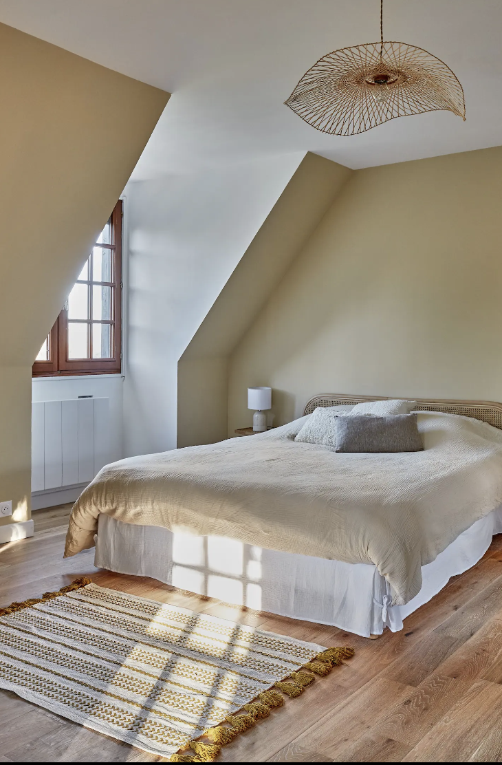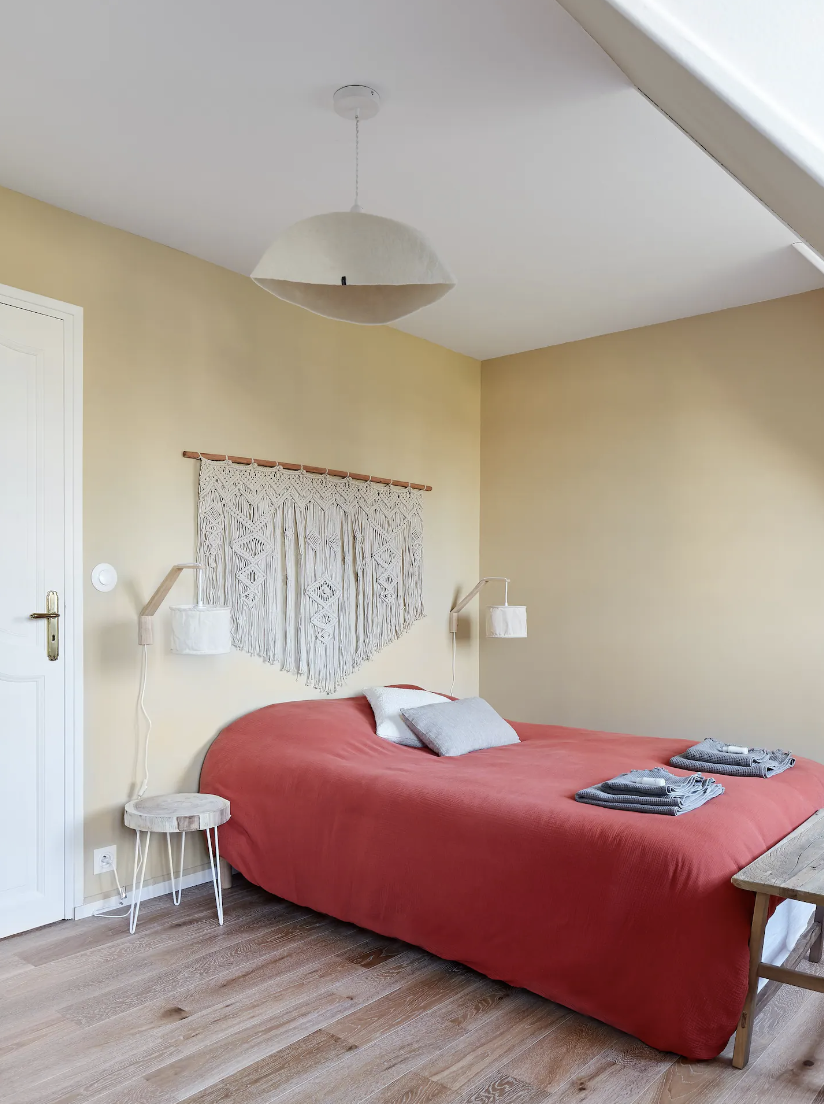 Lit double avec salle de bain partagée. 450€ par personne (550€ en chambre individuelle).