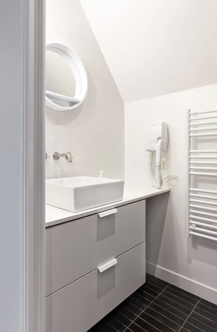 Lit double 160 avec salle d'eau privative attenant à la chambre. 470€ par personne.