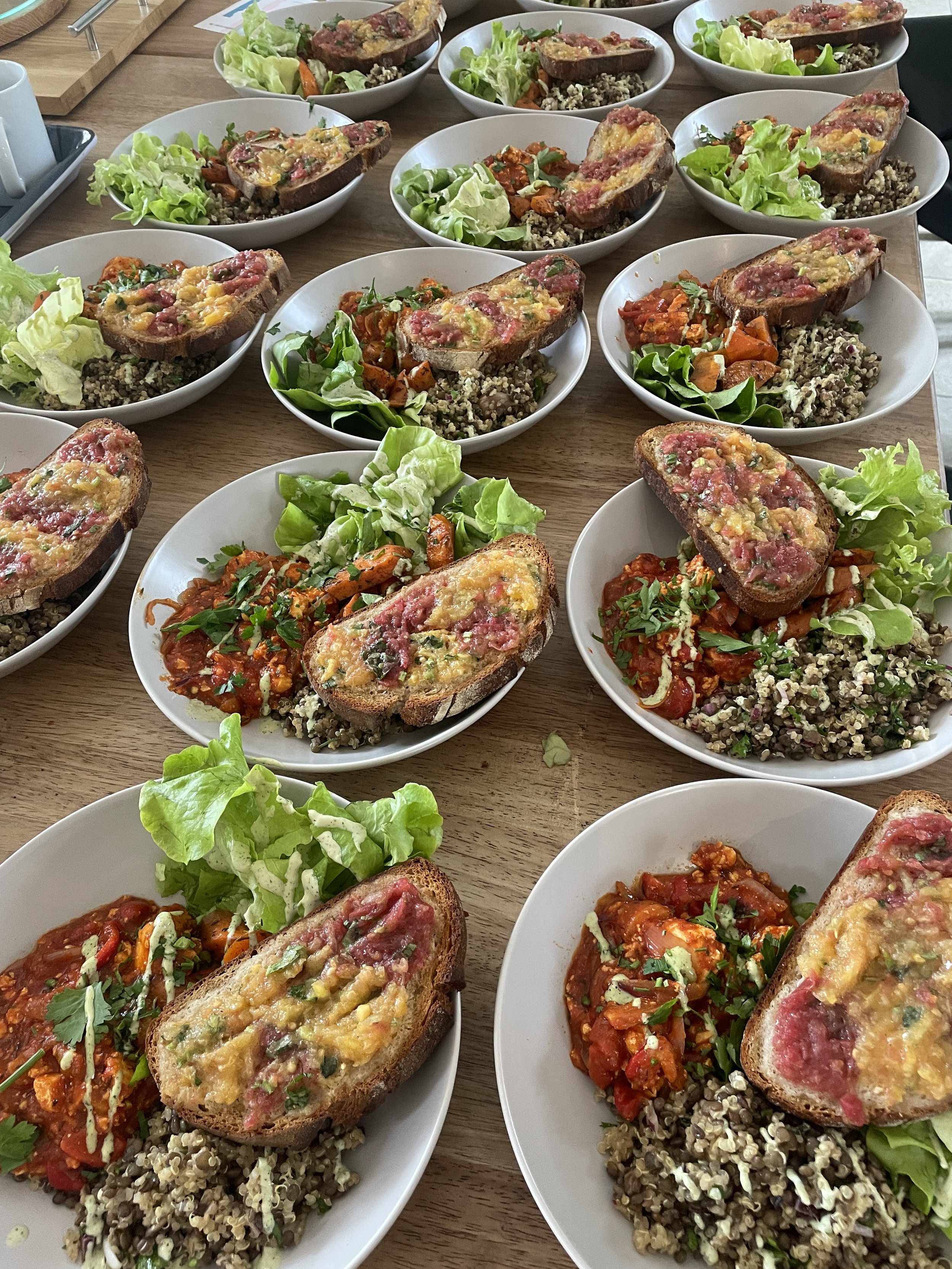 Les repas: collations, brunch, dîner préparés sur place le jour-même avec des produits frais par notre cheffe Diana.